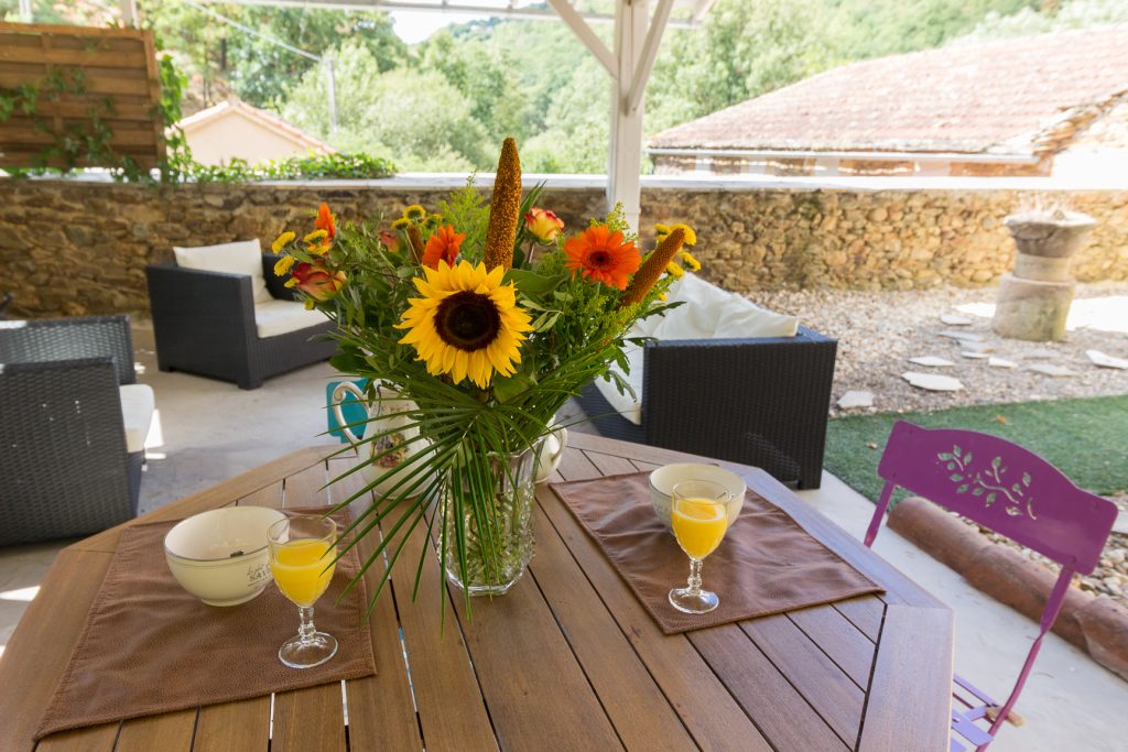 Patricia et André ont restauré et décoré cette ancienne grange en préservant le caractère authentique des lieux. Les murs sont en pierres de pays et les vieilles poutres supportent la charpente. Vous apprécierez la grande terrasse en partie couverte et l’ouverture du gîte sur la nature verdoyante et vue sur le cours d’eau.